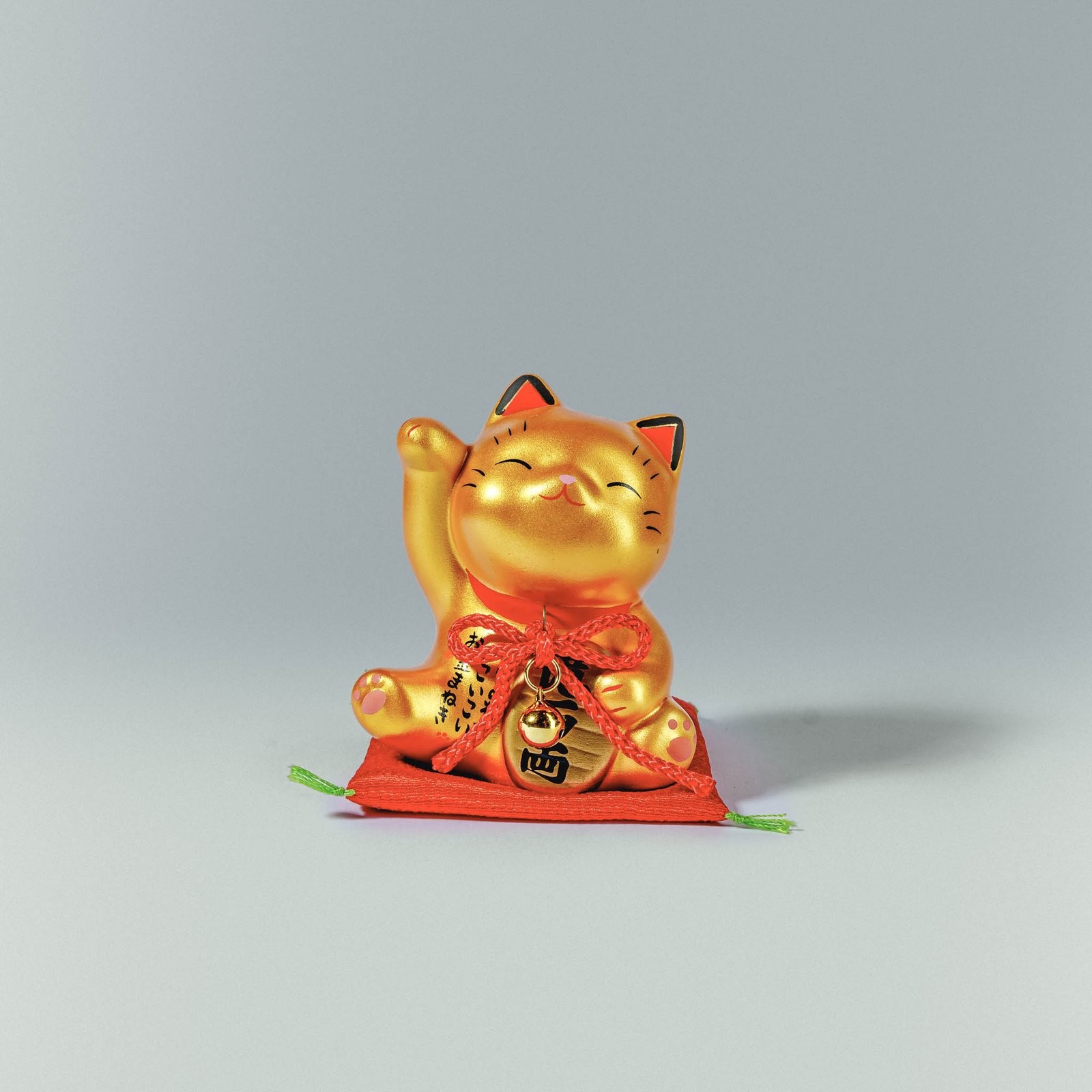 The Colorful Fortune Coin Maneki Neko (Gold) symbolizes prosperity, wealth, and vibrant good luck.