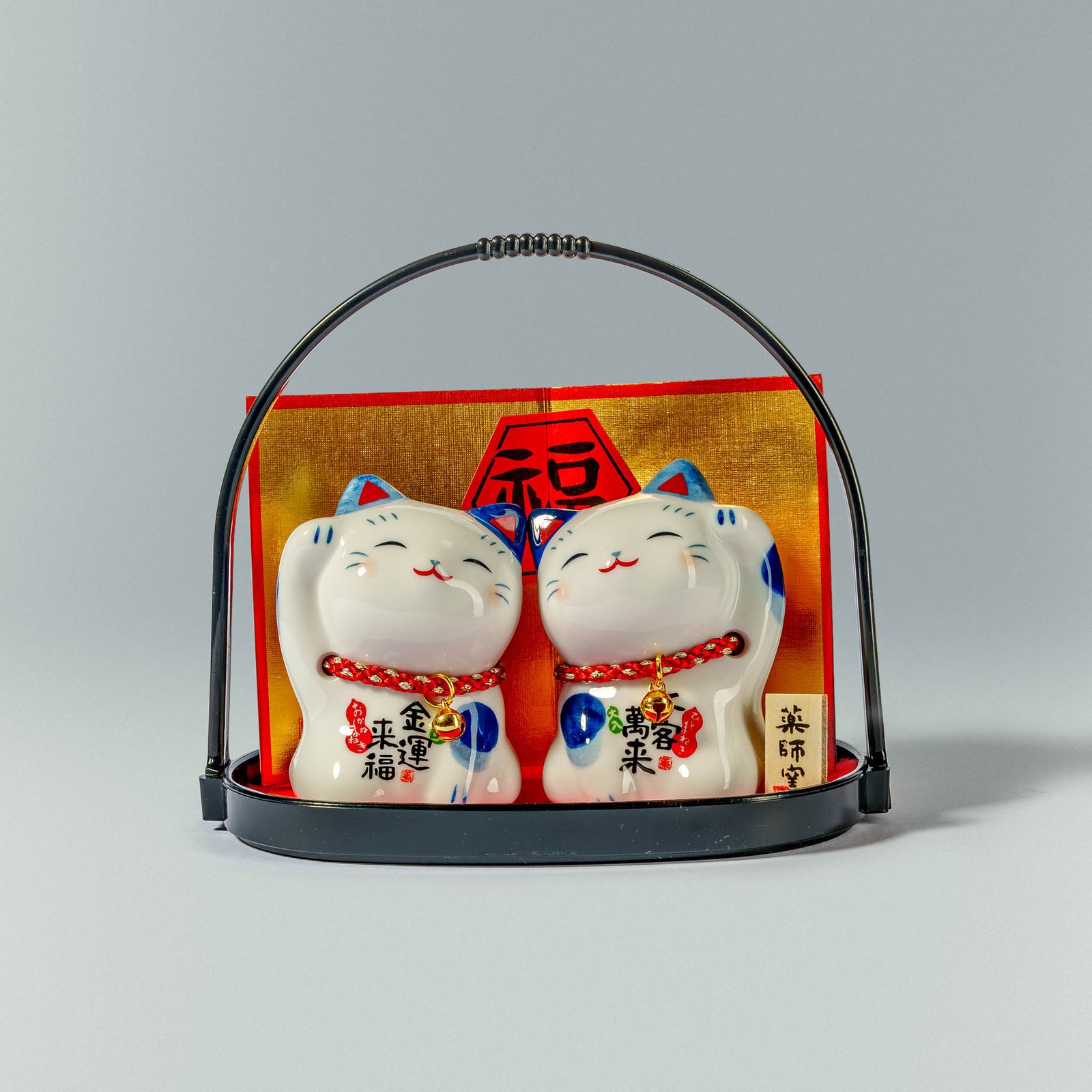 锦染单招手金钱招财猫(附小手笼) Kinran One-Paw Maneki Neko with Decorative Cage